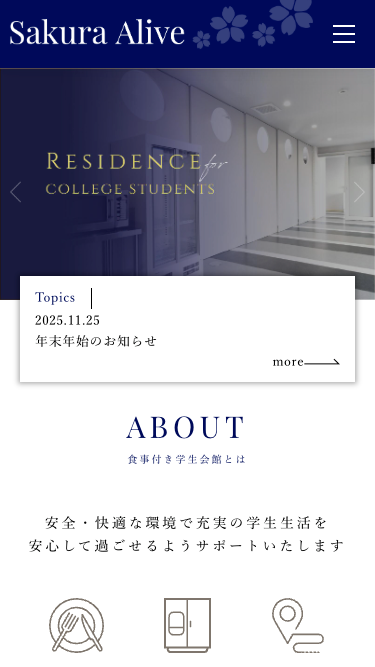 学生向け寮・賃貸サービスについて、初めての一人暮らしを検討する学生と保護者が、安心して情報を確認できるWebサイトを制作しました。