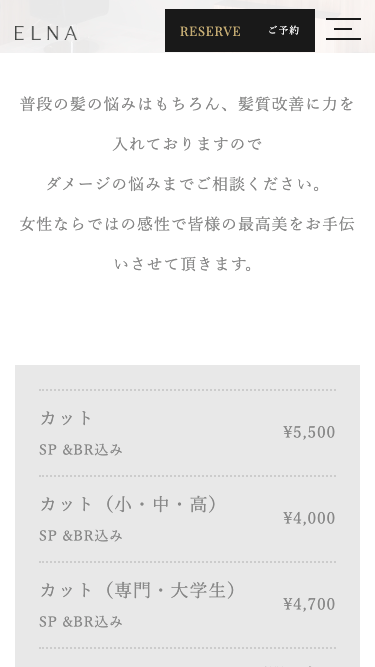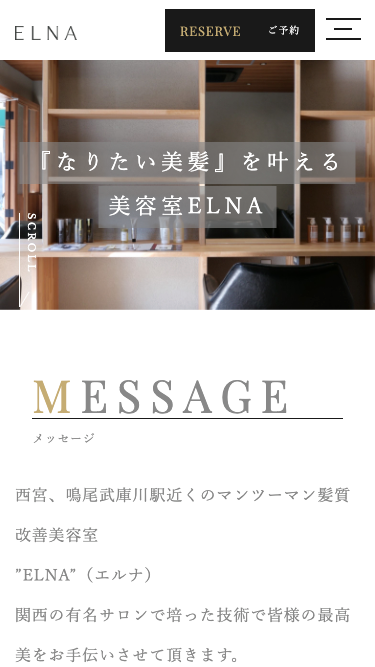 美容室の公式Webサイトとして、WordPressで構築しました。 内装や施術イメージ、スタイル事例を主軸に、店舗の世界観が自然に伝わる構成とし、初来店のユーザーにも安心感を与える情報設計を行っています。 更新頻度の高いスタイル・ブログを無理なく運用できる点も重視しました。