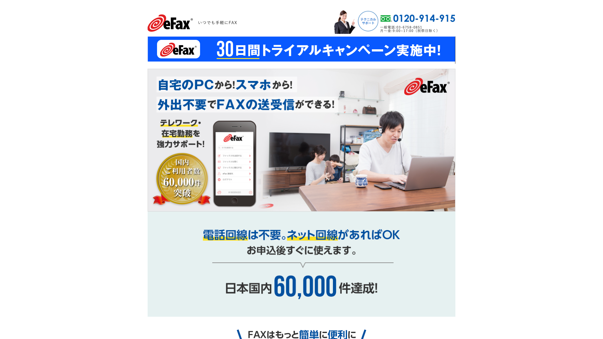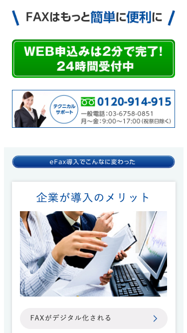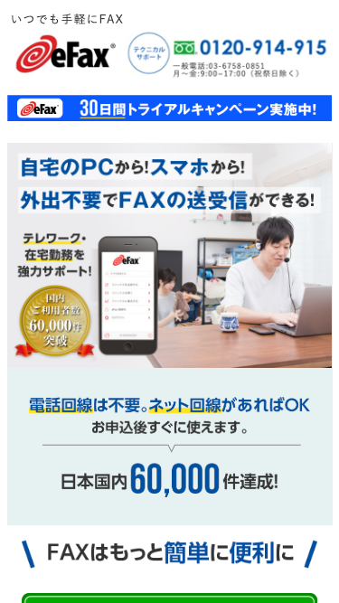 ・従来のFAX業務に課題を感じている法人ユーザーへサービス価値を伝える ・eFAX導入による業務効率化・コスト削減を分かりやすく訴求する ・問い合わせ・導入検討につながる導線を明確にする