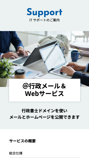 行政書士向けに提供される福利厚生・保険サービスについて、安心して検討・申込ができるWebサイトを目的として構築しました。